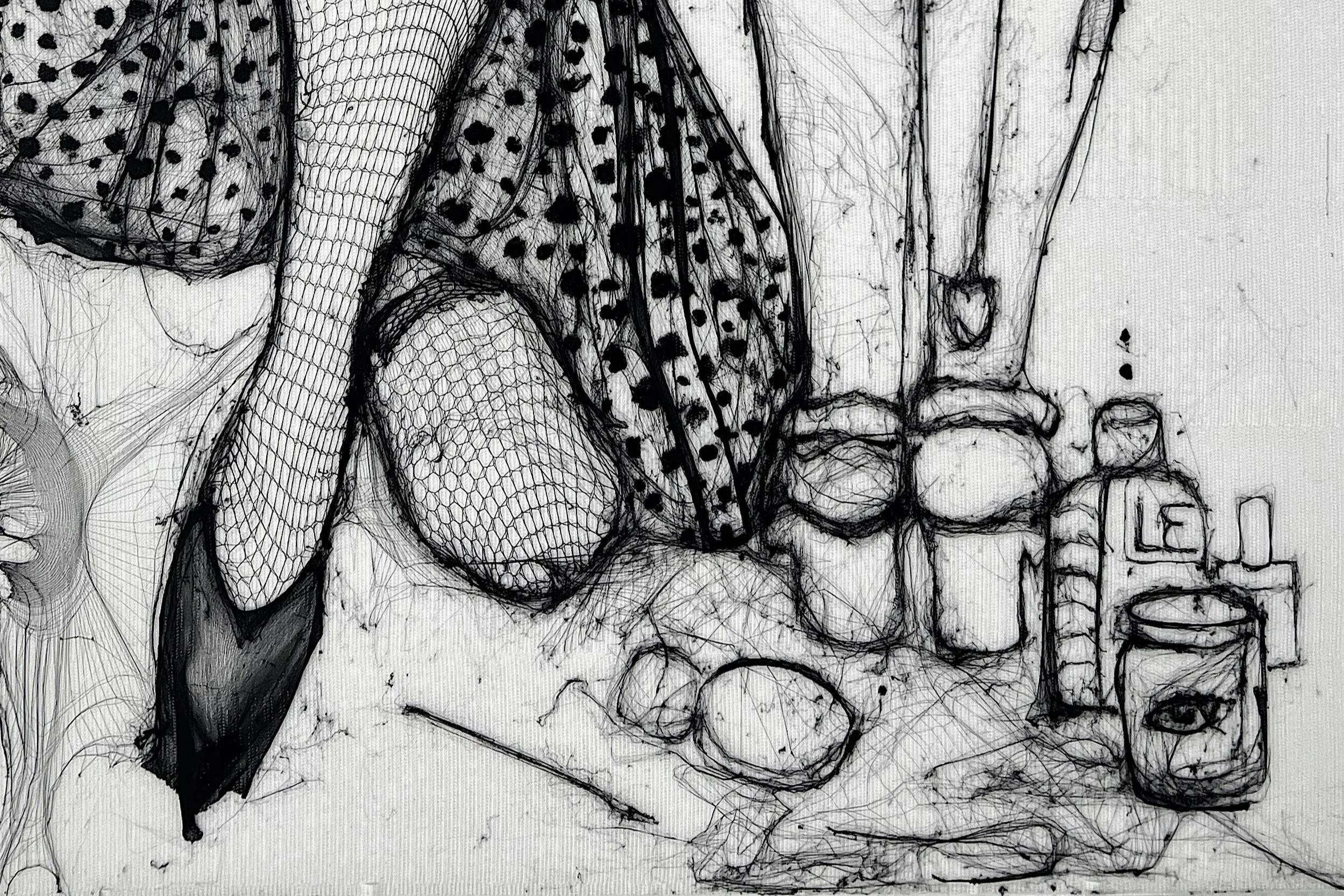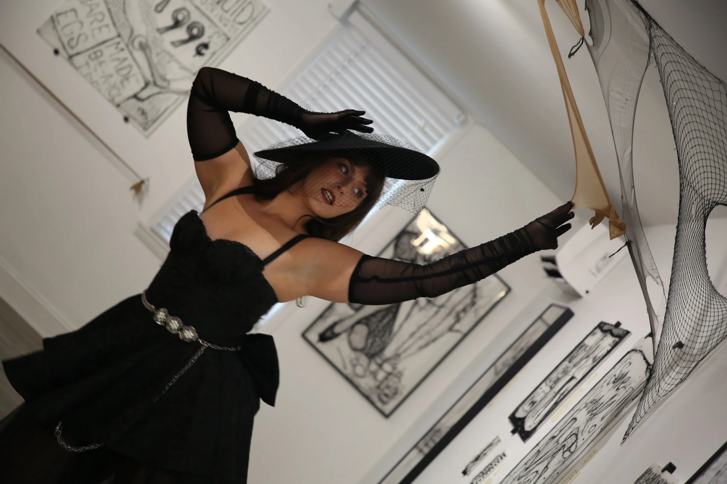 Lucine is the first-and-only known artist in her fiber craft, working with torn pantyhose and custom-built canvases on a 2D plane.